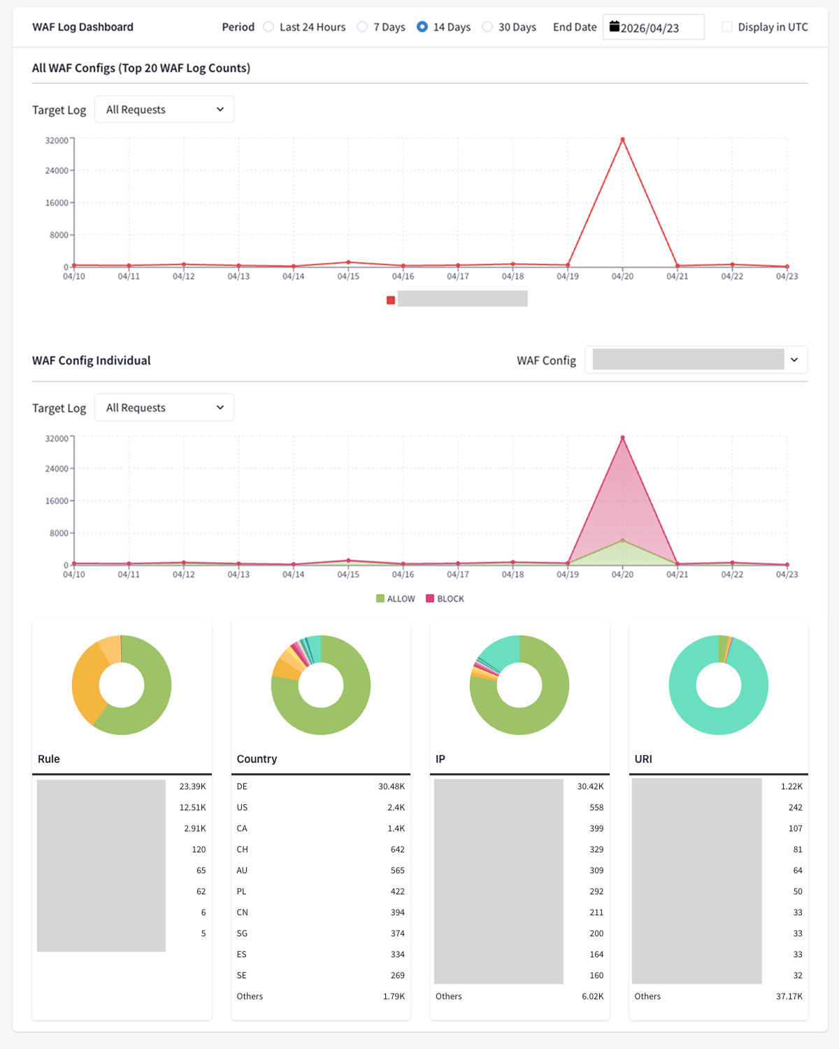 Country: This is a value from the country available in the WAF log.