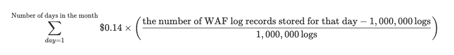 WAF log storage option | Daily charges apply for the number of stored WAF log records exceeding the free allocation. | Daily | The calculation formula is provided below. | |