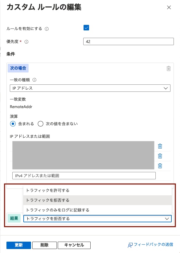 Azure Portalにてルールアクションを変更する場合は、ルールごとに以下の手順で値を更新する必要があります。
