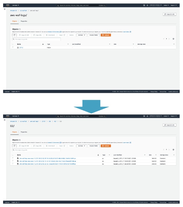 *WAF logs are exported to the S3 bucket when they reach the specified buffer interval or buffer size.