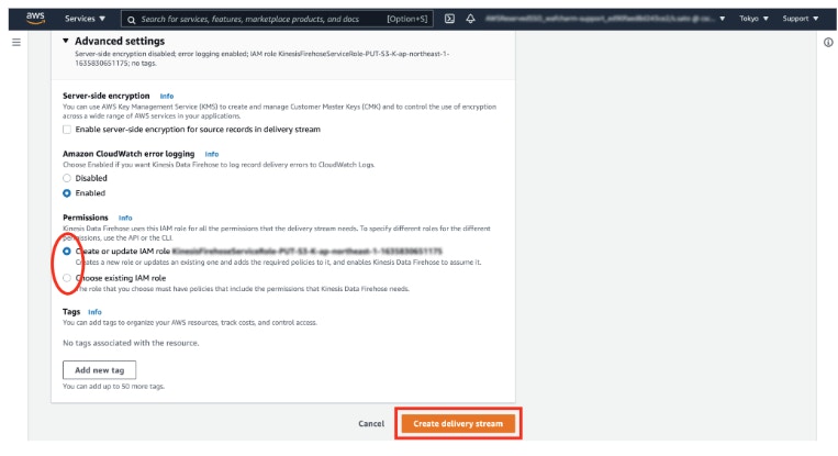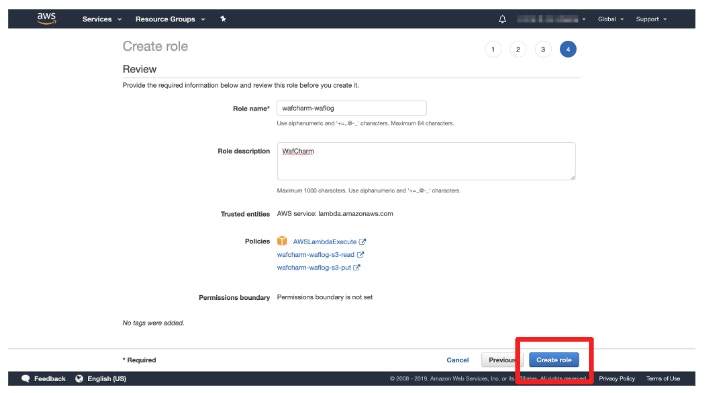 Existing role: Select the IAM role you created in the previous steps (e.g.: wafcharm-waflog)