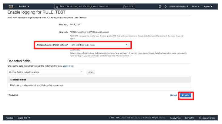 Prefix: prefix of the S3 bucket you created in the previous steps (e.g.: waflog/ )