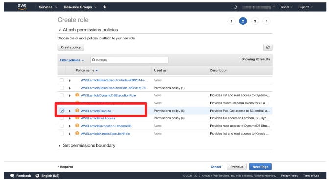 Therefore, the AWS account you use on the AWS management console must have the permissions listed below.